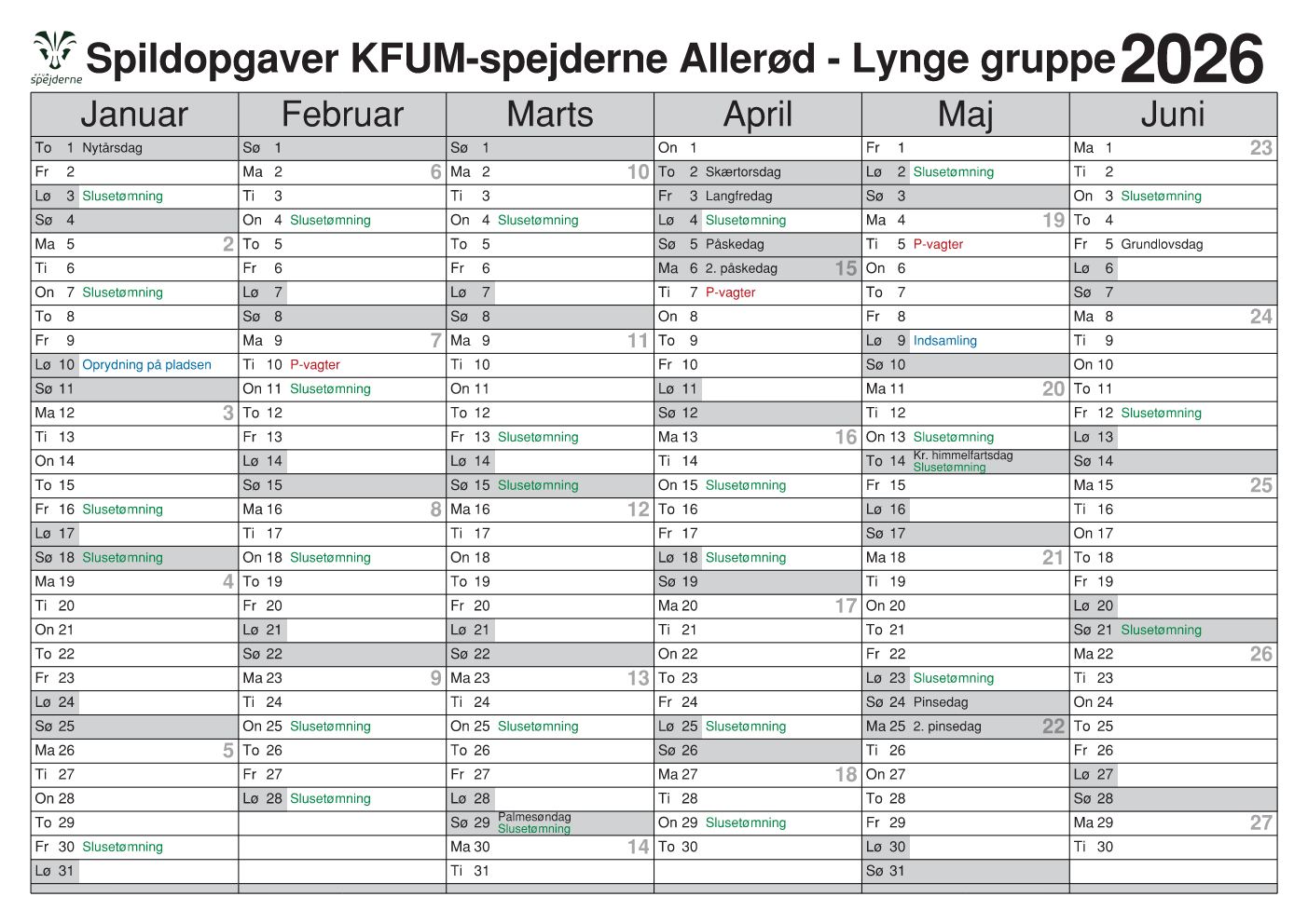 Spørg altid den plads ansvarlige om der er noget andet I skal hjælpe med udover det der er beskrevet her.