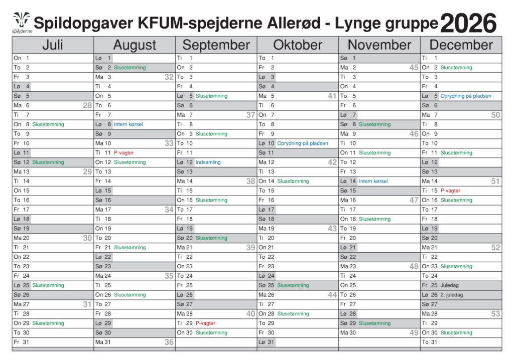 Derfor er det vigtigt at alle medlemmer og forældre i gruppen, i løbet af året er med til at give en hånd med Spildoparbejdet. Der optjenes 200 grønne penge per familie/voksen/spejder over 18 år, for hver opgave der udføres. Tilmeldinger til sluse og spildop indsamlinger udsendes på mail af Gruppeleder eller Forperson