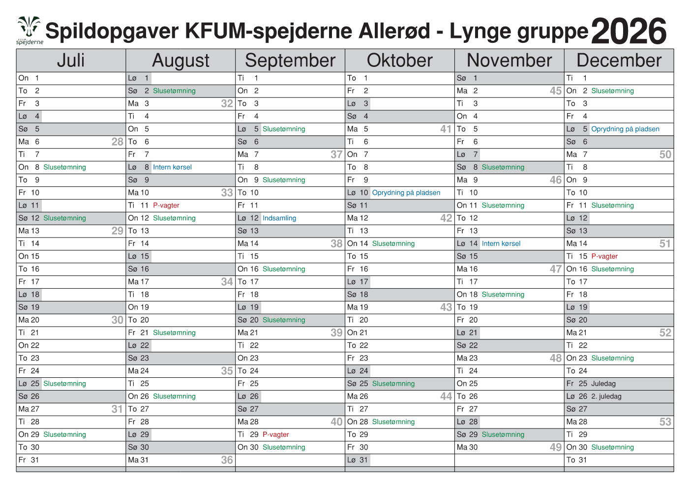 Spørg altid den plads ansvarlige om der er noget andet I skal hjælpe med udover det der er beskrevet her.